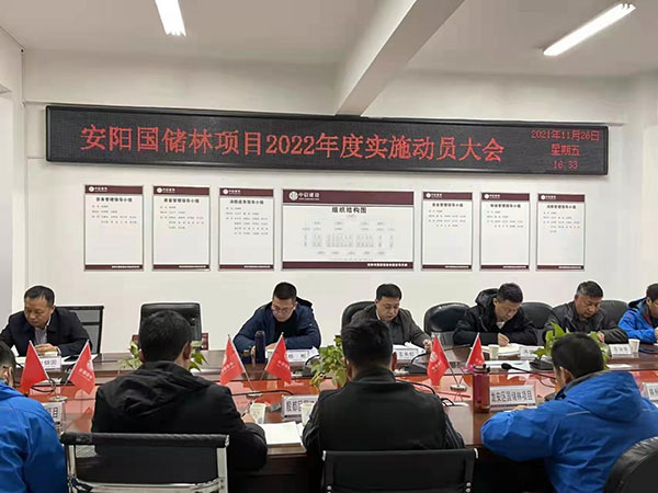 2021年11月26日下午,景欣公司在總包項目部二樓會議室召開國儲林項目2022年度實施動員大會,安排部署今冬明春造林相關事宜,公司全體干部職工、中信建設安陽國儲林項目部全體成員、設計單位負責人及施工一部、二部代表參加會議。