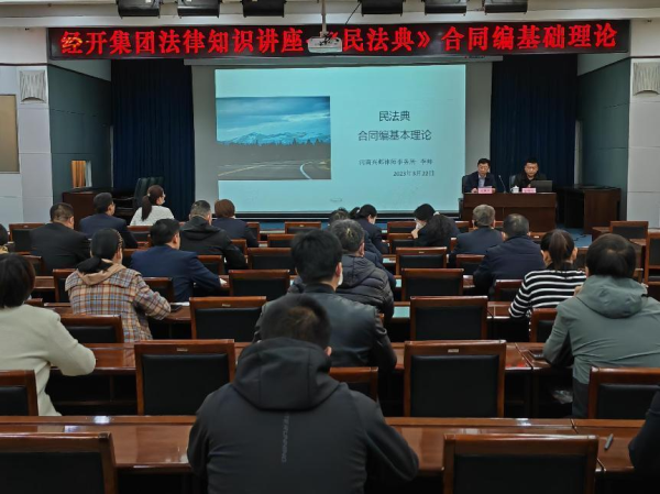 為進(jìn)一步增強(qiáng)集團(tuán)員工法治意識,防范集團(tuán)常見合同法律風(fēng)險,2023年3月22日下午,集團(tuán)邀請安陽興鄴律師事務(wù)所專職律師就《民法典》合同編基礎(chǔ)理論部分為我們進(jìn)行專題授課。本次講座在財政局二樓綜合會議室舉辦,集團(tuán)黨委委員、紀(jì)檢書記尚飛主持。