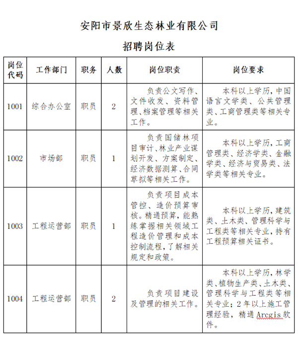 安陽市景欣生態(tài)林業(yè)有限公司(以下簡稱“景欣林業(yè)”)是安陽市國家儲備林建設PPP項目公司,根據(jù)工作發(fā)展需要,擬委托安陽鼎泰勞務派遣有限責任公司(以下簡稱“鼎泰公司”)面向社會公開招聘6名工作人員?,F(xiàn)將有關事項公告如下: