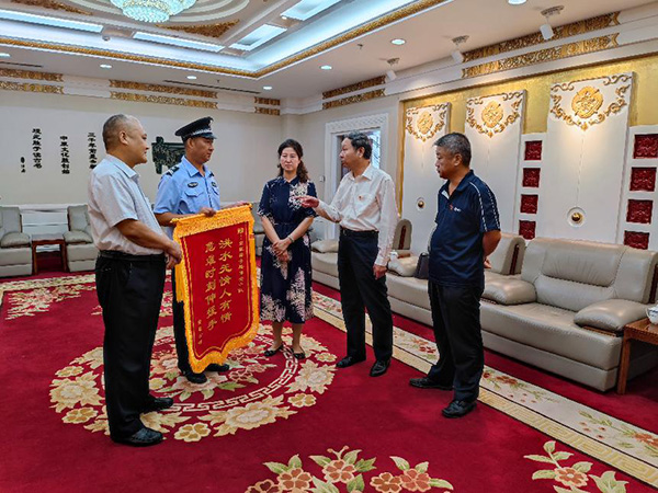 2021年7月28日下午3點(diǎn),“感謝你們,我這條命是你們撿回來的!”安勤公司員工曹運(yùn)玲拿著“洪水無情人有情,危難時(shí)刻伸援手”的錦旗在市黨政綜合大樓一樓會客室送到市黨政綜合樓保安中隊(duì)中隊(duì)長戶永豐手中,感謝他們的救命之恩。安陽市機(jī)關(guān)事務(wù)中心、三級調(diào)研員陳紹華,機(jī)關(guān)事務(wù)中心、保衛(wèi)科長孫文勝;安陽市安勤商務(wù)公司董事長兼總經(jīng)理劉全喜,安勤商務(wù)公司副總經(jīng)理王軍;安陽經(jīng)開集團(tuán)黨委委員副總經(jīng)理劉志霞;洹河保安公司黨委委員、副總經(jīng)理魏東,總經(jīng)理助理、人防分公司經(jīng)理李向陽,參加此次活動。